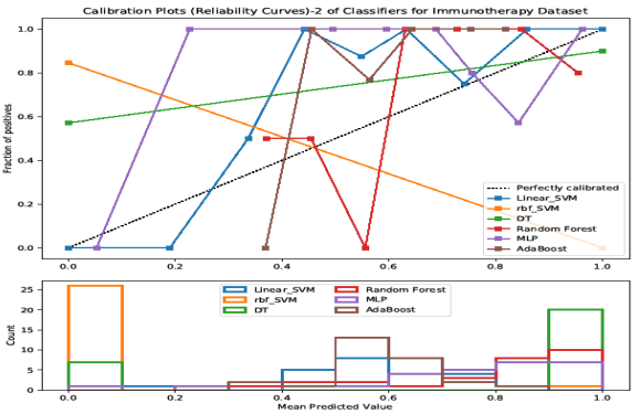 The healthcare applications frequently collect and store the patient data (mostly multivariate) to examine the history of the treatment and thereby enhance the effectiveness of treatment. The efficient treatment to the patient depends on the performance of the machine learning models used for analytics tasks of patient data. It is convenient to have a machine learning classification model in a healthcare application to predict the probability of an observation belonging to each possible class rather than predicting a class value directly for any disease classification problem. Such predicted probabilities are required to be calibrated to assist the overall support and confidence of any machine learning classification model used in many healthcare applications. In this paper, the predicted probabilities are studied to diagnose and improve the calibration of models used for probabilistic classification. The general performance of selected classification models on the two latest wart skin disease treatment data is also reported.